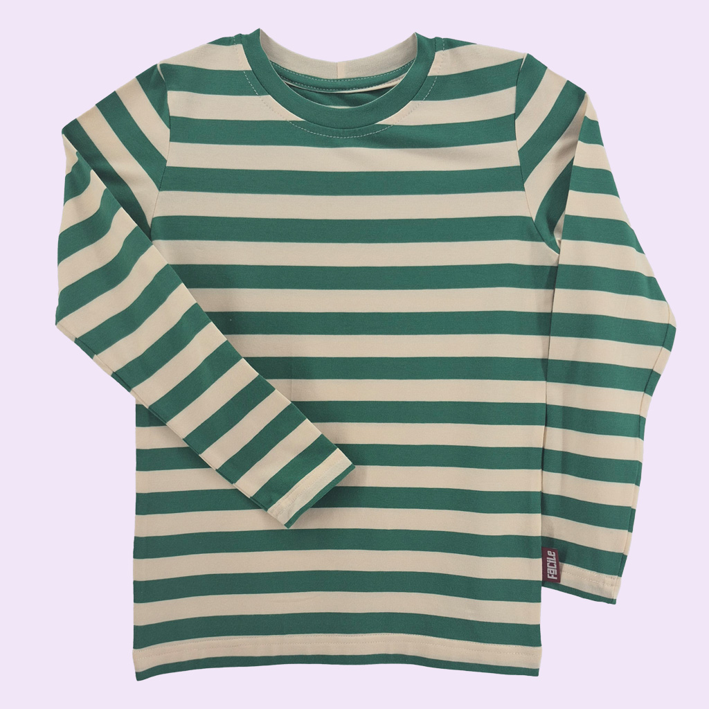 Bluzka z długim rękawem w paski zielono-kremowe